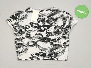 Bluzka damska CROPP - Model: krótki top z krótkim rękawem - Wzór: czarne tło w białe stokrotki z żółtymi środkami - Dekolt: głęboki, półokrągły z przodu i z tyłu - Rękawy: lekko bufiaste przy rami...Stan: