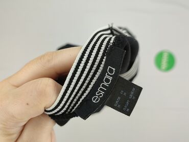 T-shirt damski Esmara - Krój: klasyczny, z krótkim rękawem i okrągłym dekoltem - Wzór: białe tło w cienkie, czarne poziome paski - Materiał: 100% bawełna (metka wewnętrzna) - Rozmiar z metki: EU S...