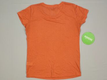 T-shirt damski w kolorze intensywnej pomarańczy. - Krój: klasyczny, z krótkim rękawem - Dekolt: w kształcie litery V - Materiał: cienka, miękka dzianina bawełniana (bez metki składu – wygląda na b...