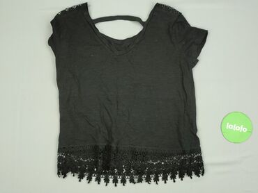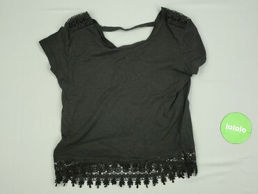 Czarna damska bluzka House, rozmiar M. - Fason: luźny T‑shirt z okrągłym dekoltem - Rękawy: krótkie, ażurowe/koronkowe wstawkami na ramionach i na całej długości rękawów - Materiał: 65% poliester,...