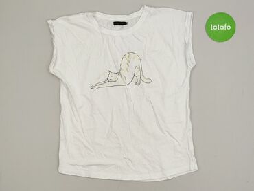 Koszulka damska Sinsay z nadrukiem kota - Kolor: biały - Rozmiar: XS (z metki) - Krój: klasyczny T‑shirt z okrągłym dekoltem, krótkie rękawy - Materiał: 100% bawełna (informacja z metki) - Nadruk:...