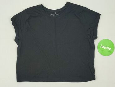 Czarna koszulka damska Sinsay - Marka: Sinsay - Fason: klasyczny T-shirt, okrągły dekolt, bez nadruków - Kolor: czarny - Rozmiar z metki: L - Materiał: miękka dzianina bawełniana (na metce Sinsay;...