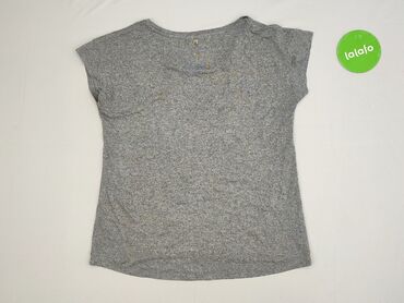 Szara koszulka T‑shirt damska - Klasyczny, gładki T‑shirt w kolorze jasnoszarym (melanż) - Krótki rękaw, okrągły dekolt - Skład materiału: 90% bawełna, 10% poliester (metka widoczna na zdjęciu) - ...