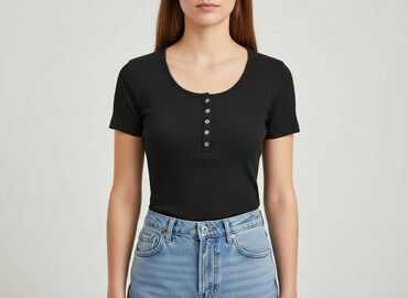 - Krój: dopasowany T-shirt z krótkim rękawem