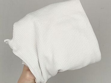 Biała bluzka z krótkim rękawem i stójką - Kolor: biały - Krój: luźniejszy, długość do pasa, krótkie szerokie rękawy - Dekolt: stójka/krótka golfowa listwa z prążkowanej dzianiny - Dół z szeroką li...Stan: