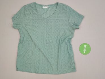 Bluzka damska JANINA, rozmiar L - Krój: T-shirt z krótkim rękawem, okrągły dekolt - Zapięcie: krótka listwa z 4 guzikami z przodu - Kolor: oliwkowy/khaki - Wzór i wykończenie: ażurowa dzianina z d...