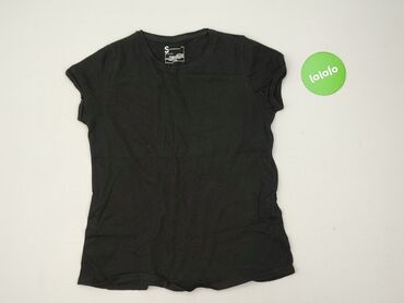 Czarna, prążkowana koszulka damska FB Sister, rozmiar S. - Fason: dopasowany, z krótkim rękawem i okrągłym dekoltem - Materiał: 95% bawełna, 5% elastan – miękki, elastyczny i oddychający - Struktu...