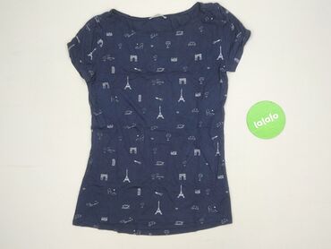 T-shirt damski Orsay, granatowy, z nadrukiem „Paris”. - Krój: lekko dopasowany, z krótkim rękawem typu kimono i okrągłym dekoltem. - Materiał: cienka, miękka dzianina (przyjemna w dotyku, elastycz...Stan: