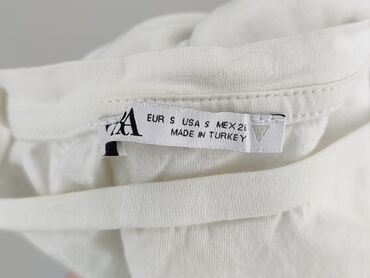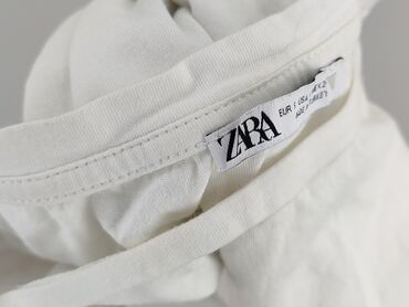 T-shirt damski ZARA - Model: klasyczny T-shirt z krótkim rękawem - Kolor: biały - Rozmiar z metki: S (EUR S / USA S / MEX 26) - Fason: luźna góra, elastyczne marszczenie w pasie ze stębnowaniem, d...