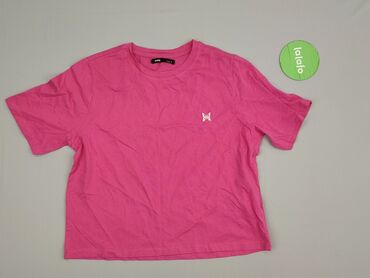 T-shirt damski Sinsay, rozmiar S. - Kolor: intensywny róż (fuksja) - Krój: krótki, lekko oversize, z krótkim rękawem i okrągłym dekoltem - Materiał: miękka, cienka dzianina bawełniana (metka wskaz...