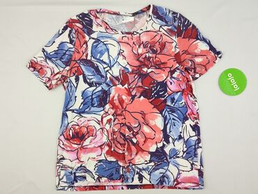 Damska koszulka z krótkim rękawem – kolorowy, kwiatowo-roślinny print - Typ: T-shirt damski - Krój: klasyczny, okrągły dekolt, krótkie rękawy - Wzór: wielobarwny nadruk w kwiaty i liście, efektown...