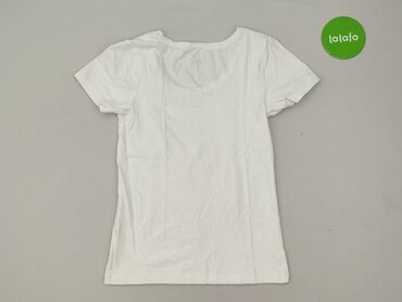 Biała koszulka damska z krótkim rękawem - Rozmiar: S (na metce: Damen S) - Klasyczny, zaokrąglony dekolt - Dół lekko wydłużony z tyłu (fason delikatnie zaokrąglony) - Prosty, jednolity kolor – łatw...