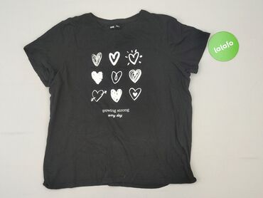 Czarna koszulka damska Sinsay, rozmiar M. - Materiał: 100% bawełna (metka widoczna na zdjęciu) - Krój: klasyczny T-shirt z krótkim rękawem i okrągłym dekoltem - Nadruk z przodu: białe serdusz...