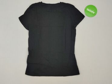 Czarna koszulka damska z krótkim rękawem - Krój: klasyczny T‑shirt, okrągły dekolt - Rozmiar z metki: L - Marka na metce: F&F - Materiał: miękka, elastyczna dzianina bawełniana z domieszką (inform...