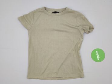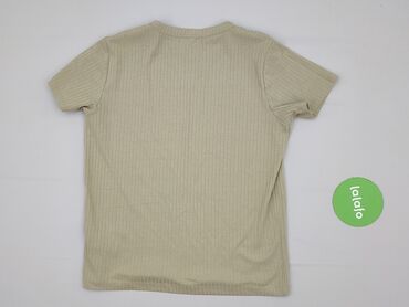 T-shirt Sinsay – rozmiar S - Kolor: jasny beż/piaskowy - Wzór: delikatny, drobny prążek na całej powierzchni - Fason: klasyczny, lekko dopasowany - Dekolt: okrągły - Rękaw: krótki (nieco dłuższy n...