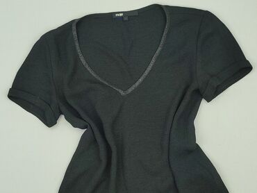 Czarna koszulka damska C&A (linia Canda) - Rozmiar: M (na metce) - Fason: klasyczny T-shirt z krótkim rękawem - Dekolt: łódka, ozdobiony drobnymi, srebrnymi nitami/kamyczkami dookoła - Materiał: 9...