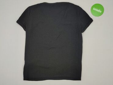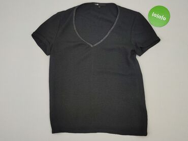 Czarna koszulka damska z dekoltem w serek - Krój: dopasowany, krótkie rękawy - Dekolt: V-neck - Rozmiar z metki: M - Kolor: czarny, gładki (bez nadruku) - Materiał: miękka, elastyczna dzianina baw...Stan: