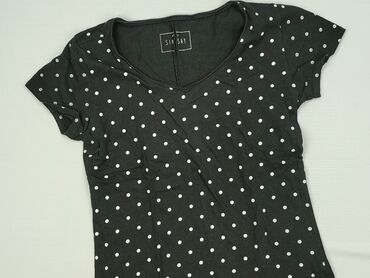 Bluzka damska Sinsay BASIC - Kolor: czarny z białym, drobnym wzorem w kropki - Krój: klasyczny T‑shirt z krótkim rękawem typu motylek, okrągły dekolt, lekko zaokrąglony dół - Rozmiar z metki: M - ...