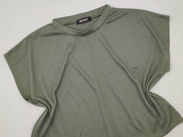 Damski T-shirt cropped - Krój: krótki (cropped), oversize z szerokimi rękawami - Dekolt: okrągły, ściągacz przy kołnierzu - Kolor: sprany zielony/khaki z efektem vintage (stone wash) - Materiał: 1...Kolor: