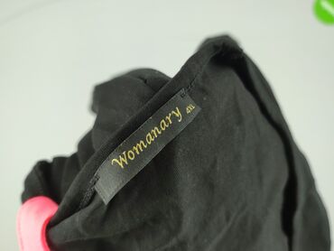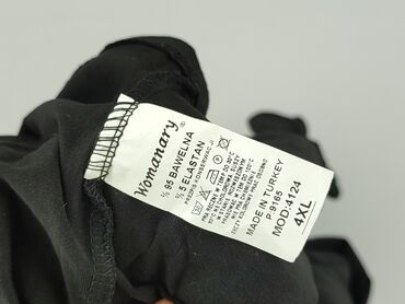 Bluzka damska 4XL – czarna, z fioletową wstążką - Krój: luźny, prosta linia, krótkie szerokie rękawy, okrągły dekolt - Detal: fioletowa dekoracyjna wstążka/pasek wszyty z boku, do związania - Mate...