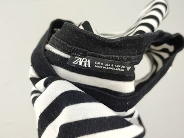 Koszulka damska Zara - Model: T-shirt w paski - Kolor: biało-czarny, poziome pasy - Krój: luźny, krótki rękaw, dekolt w serek (V-neck) - Rozmiar: S (EUR S, USA S, MEX 26 – na metce) - Materiał: 10...