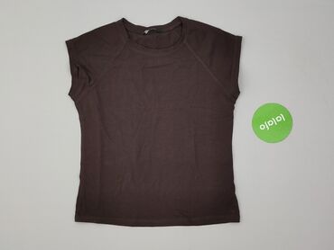 Koszulka damska TESS - Typ: t-shirt - Kolor: ciemny brąz - Rozmiar z metki: L - Krój: lekko dopasowany - Dekolt: w serek (V-neck) z marszczeniem na środku - Rękaw: krótki - Materiał: dzianina bawe...Stan:
