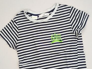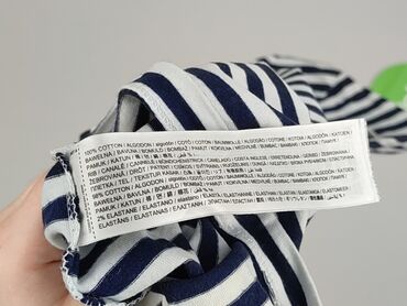 T-shirt damski w paski, rozmiar S - Krój: klasyczny, z krótkim rękawem i okrągłym dekoltem - Wzór: biało-granatowe, poziome paski w marynistycznym stylu - Detal: subtelne aplikacje z drobnych dżet...