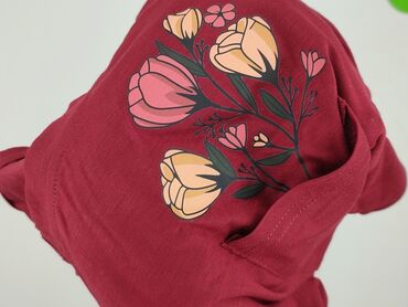 Damska koszulka z krótkim rękawem, bordowa/burgundowa. - Klasyczny, okrągły dekolt - Na froncie duży nadruk z motywem żółtych róż i francuskim tekstem - Miękka, cienka dzianina bawełniana (na zdjęc...