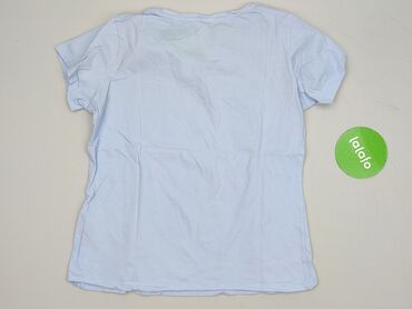 Koszulka damska z krótkim rękawem, ozdobiona wzorem w niebieskie kwiaty na białym tle. Wykonana z bawełny, co zapewnia komfort noszenia. Idealna na co dzień, do letnich stylizacji. Fason koszulki s...