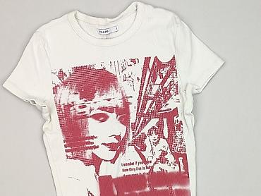 T-shirt damski Cropp - Rozmiar: XS (z metki) - Kolor: ecru/kremowy - Krój: klasyczny, z krótkim rękawem i okrągłym dekoltem - Materiał: miękka, elastyczna dzianina bawełniana (widoczna struktura n...Stan: