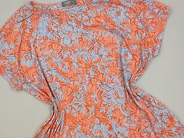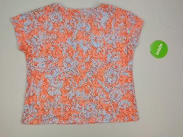 Bluzka damska Reserved, rozmiar XL - Fason: luźny T-shirt z krótkim rękawkiem typu cap - Dekolt: okrągły - Kolor: ecru/krem z pomarańczowym, roślinnym orientalnym wzorem na przodzie; tył gładki ec...