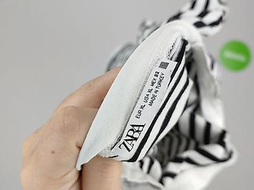 T-shirt damski Zara - Model: koszulka z krótkim rękawem - Wzór: czarno-białe, wąskie poziome paski - Dekolt: okrągły - Fason: prosty, lekko dłuższy tył - Materiał: miękka, elastyczna dzianina (kom...