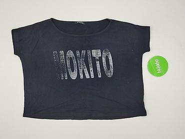 Bluzka damska Mohito Collection, rozmiar S. - Kolor: ciemnoszary melanż - Krój: z krótkim rękawkiem typu cap, okrągły dekolt - Przód ozdobiony nadrukiem „Be thankful for every new day” - Dekoracje...