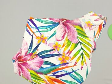 - Wzór: kolorowy, tropikalny print w kwiaty i liście (odcienie różu, zieleni, niebieskiego, pomarańczu) na białym tle