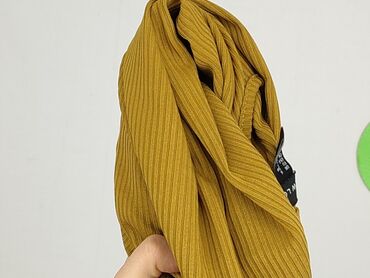 Bluzka damska w kolorze musztardowym - Krój: luźny T‑shirt z krótkim rękawem, dekolt okrągły - Detal: wiązanie z przodu tworzące kokardę/supły, które podkreśla talię - Wzór i faktura: pionowe prąż...Stan: