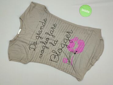 T-shirt damski Split - Marka: Split - Rozmiar z metki: M - Kolor: beżowy - Materiał: 100% bawełna - Nadruk z przodu: napis „give me a reason” w stylu retro, grafika w odcieniach niebieskiego i żół...