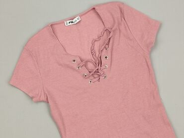 Różowa koszulka damska/t-shirt FB Sister - Kolor: jasny róż (pastelowy) - Krój: klasyczny, z krótkim rękawem i okrągłym dekoltem - Rozmiar z metki: XXS - Materiał: miękka dzianina bawełniana z dom...