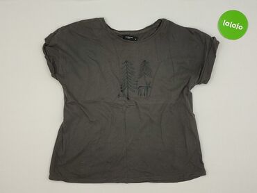 Szara damska koszulka marki Reserved w rozmiarze M. Dekolt okrągły. Krótkie rękawy. Koszulka ozdobiona jest z przodu grafiką przedstawiającą drzewa i napisem. Wygodna i swobodna, idealna do noszeni...
