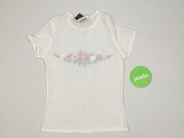 Biała koszulka damska z naszywkami-kwiatkami, rozmiar M - Krój: T‑shirt z krótkim rękawem, dekolt w kształcie litery V - Rozmiar z metki: WOMEN M - Kolor: biały/ecru - Ozdoby: pięć delikatnych, wy...