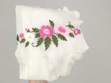 - Detale: bogaty, wielokolorowy haft kwiatowy na przodzie (odcienie różu, bieli i zieleni), delikatna siateczkowa faktura
