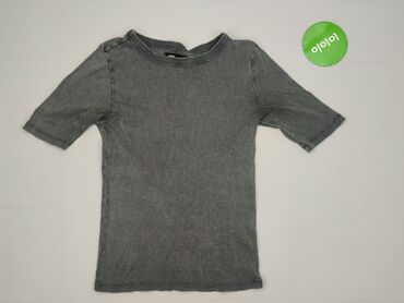 Sinsay – prążkowany T‑shirt damski - Rozmiar: XS - Kolor: jasnoszary/ecru z kontrastową białą lamówką przy rękawach i u dołu - Krój: dopasowany, krótki rękaw, okrągły dekolt - Materiał: 62% polies...