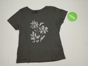 T-shirt Sinsay – rozmiar M - Kolor: ciemnoszary - Krój: klasyczny, z krótkim rękawem i okrągłym dekoltem - Nadruk: biały, roślinny/kwiecisty motyw z przodu (line art) - Materiał: miękka, elastyczn...