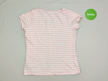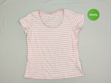 Damska koszulka JANINA - Model: t-shirt z krótkim rękawem - Rozmiar: L (widoczny na metce) - Krój: klasyczny, okrągły dekolt - Wzór: jasnoniebieskie tło w cienkie, poziome białe paski - Materiał: ...
