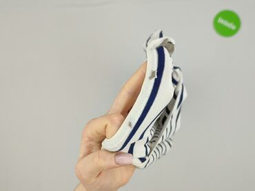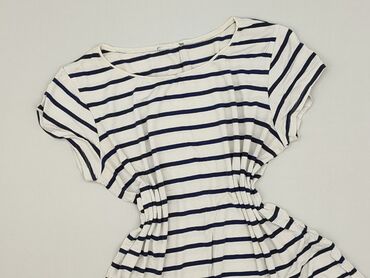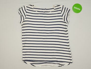 T-shirt damski w paski - Krój: klasyczny, z krótkim rękawem - Dekolt: okrągły, wykończony granatową lamówką - Wzór: drobne, poziome paski granatowo-białe - Długość: standardowa - Materiał: miękka,...Stan: