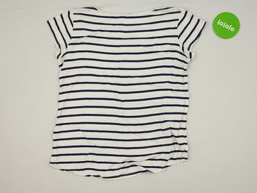 T-shirt damski w paski - Kolor: biało-czarne poziome pasy - Krój: klasyczny, lekko dopasowany - Rękaw: krótki - Dekolt: okrągły, obszyty czarną lamówką - Rozmiar z metki: S - Materiał: miękka dzia...