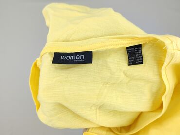 T-shirt damski, żółty, z naszytą aplikacją-kwiatem na przodzie. - Krój: klasyczny T-shirt z krótkim rękawem i okrągłym dekoltem - Kolor: pastelowy żółty - Detal: duża naszywka w kształcie pięciopł...