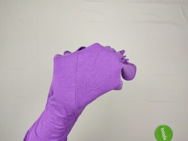 W serekFioletowy damski T-shirt z dekoltem w kształcie litery V. Model ozdobiony jest marszczeniami na ramionach, które dodają mu oryginalności i lekkości. Idealny do codziennych stylizacji, zapewniający komfort noszenia.