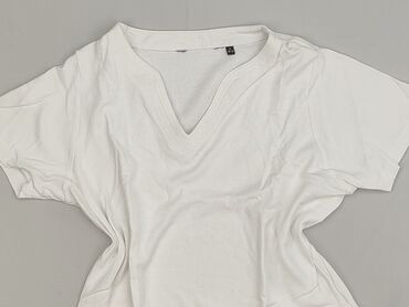Biała bluzka damska z krótkim rękawem - Kolor: biały - Krój: luźny, lekko skrócony (dół zakończony szerszym ściągaczem) - Dekolt: okrągły - Rękawy: krótkie, opadające - Rozmiar z metki: L (Women) ...