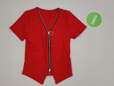 Czerwona tunika/bluzka damska z krótkim rękawem - Krój: prosty, lekko wydłużony dół, rozcięcia po bokach - Dekolt: okrągły - Zapięcie: zamek błyskawiczny z tyłu (kontrastowy) - Rękawy: krótkie, sw...