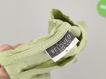 T-shirt damski BELLOVED - Kolor: pastelowa zieleń z drobnym, białym, nieregularnym deseniem - Krój: dopasowany, z krótkim rękawem typu cap - Dekolt: okrągły, obszyty lamówką w kolorze bluzki - Mat...